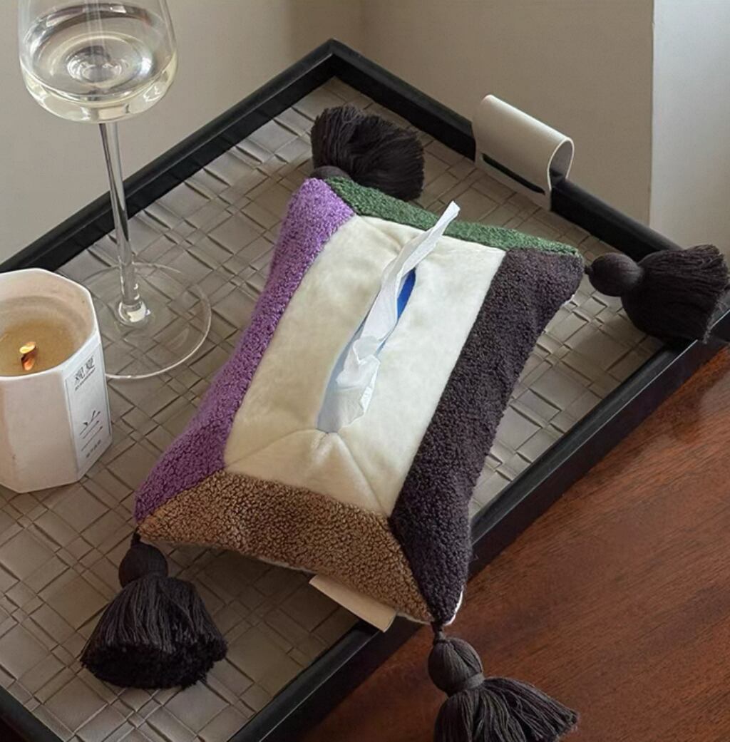丸みを帯びた柔らかい布のティッシュケースです。