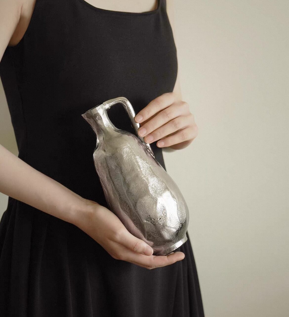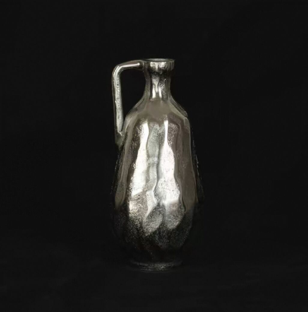 金属を成形した有機的なフォルムと、手仕事の痕跡を残す表面の揺らぎ。
