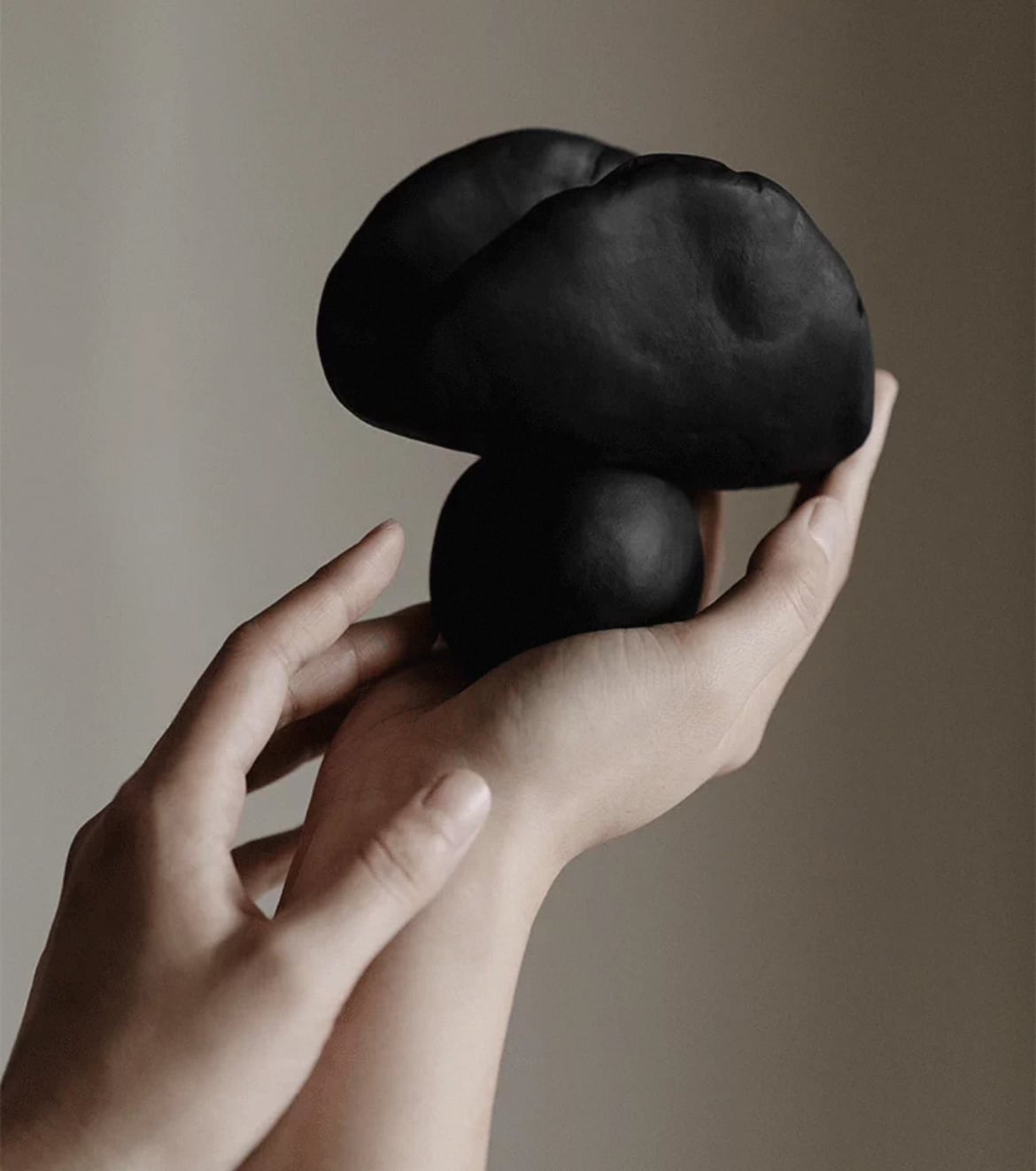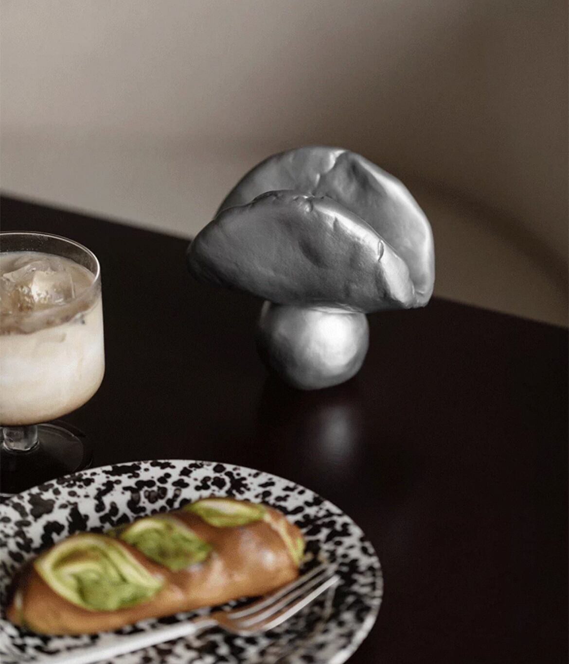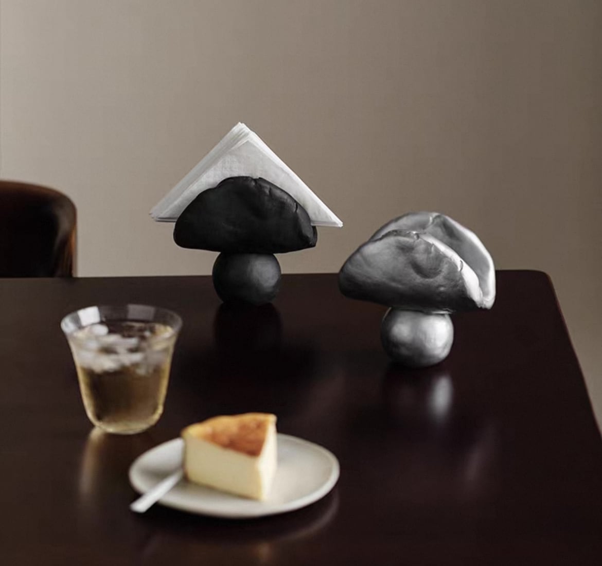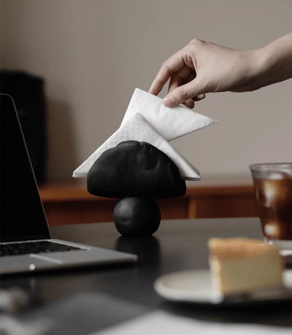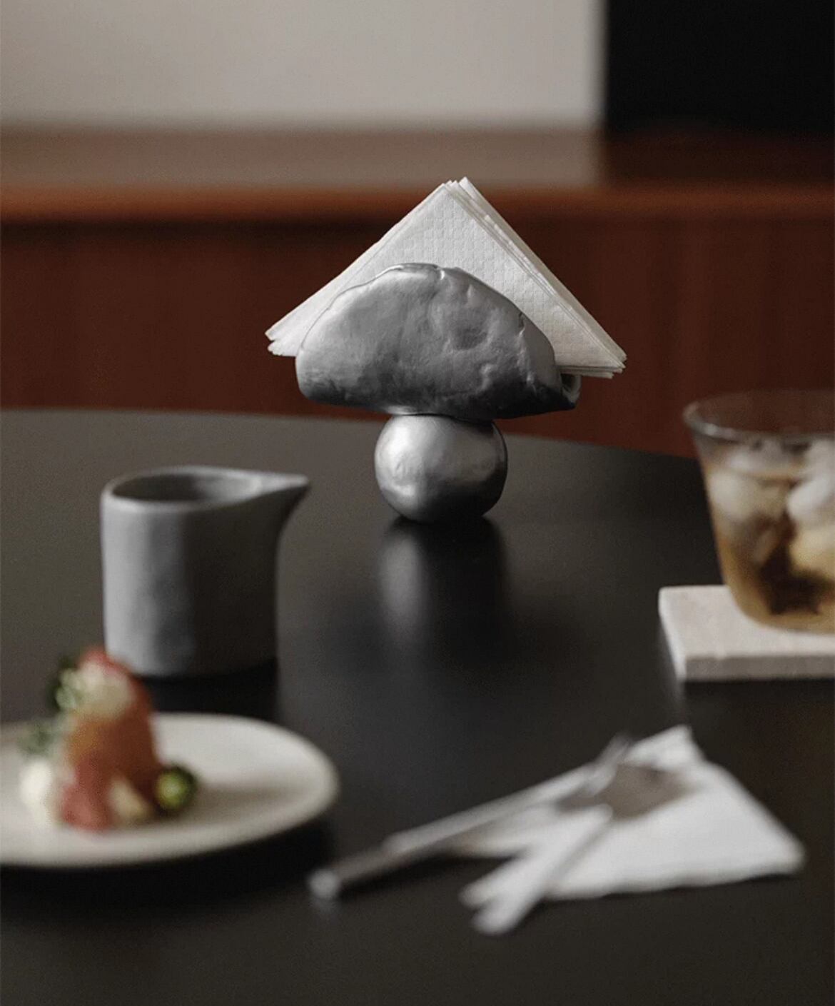 石のような質感と、マッシュルームを思わせる有機的なフォルムが印象的なナプキンホルダー。